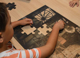 Une galerie de mine s’est effondrée, entraînant la destruction de certains bâtiments. Les enfants reconstruiront le musée à partir de puzzles de photos des différents espaces.